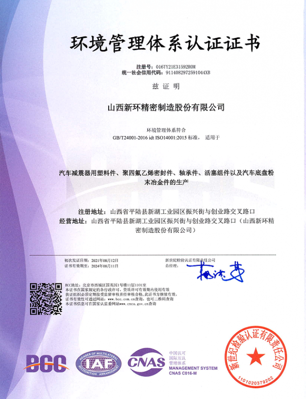 山西新環(huán)精密制造股份有限公司創(chuàng)建于1992年,是以研發(fā)、生產(chǎn)、銷售粉末冶金類、工程塑料類、橡膠制品類、氟塑類產(chǎn)品為主的高新技術企業(yè)。位于交通發(fā)達的山西省平陸縣城,距離三門峽市6 km,毗鄰隴海線,高鐵直達北京、上海、成都均為5小時左右,到達鄭州、西安皆為1小時,距離運城市機場35km。旗下子公司有:山西新環(huán)粉末冶金有限公司、山西新環(huán)科技有限公司、寧波新環(huán)氟塑料制品有限公司、寧波新環(huán)氟塑料制品有限公司軸業(yè)分公司、新勝達氟塑制品有限公司。現(xiàn)有高、精、尖設備120余臺套,固定資產(chǎn)總額1.8億元,年銷售額2.6億元。